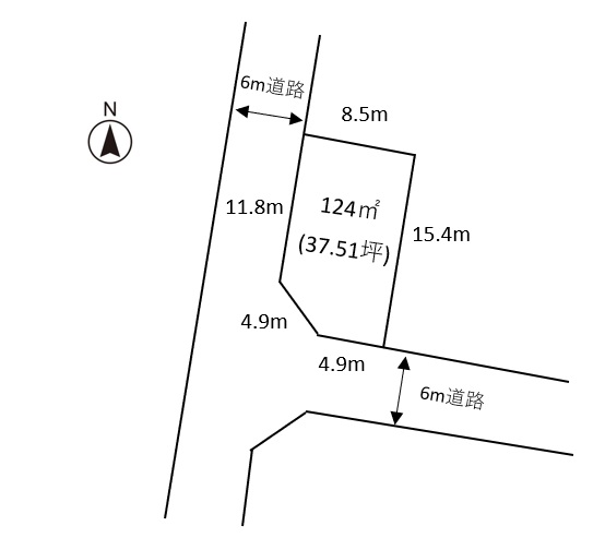 南6m・西6m道路ゆとりある道幅で駐車も安心です。